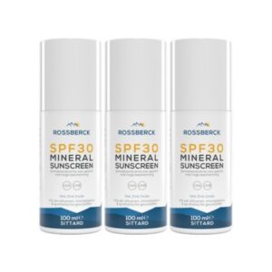 Ontdek de minerale zonnebrandcrème voor het gezicht van Rossberck. Beschikt over een SPF30 en beschermt tegen UVA- en UVB-straling.